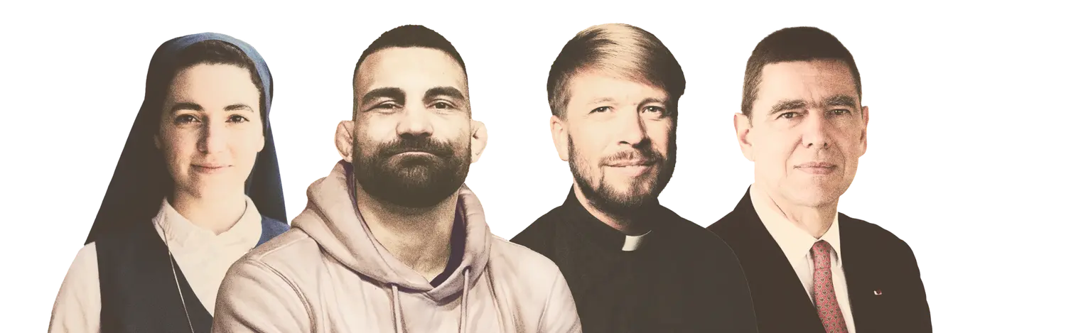 Accompagnez Benoît Saint Denis, Soeur Orianne, Général Abrial, Don Maxence, Frère Benjamin, Don Vianney ou encore Don Pierre ainsi que des millions d'autres personnes sur Hallow pour le défi du Carême 2025 : Le Chemin.