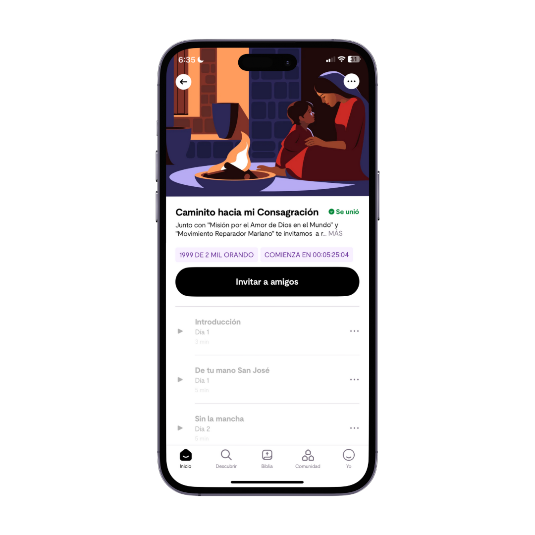 "Su aplicación no sólo me ha cambiado a mí, sino que está transformando poco a poco a mi familia y mis relaciones... Mi más sincero agradecimiento no puede captar plenamente la profundidad de mi gratitud. Habéis jugado un papel fundamental en reavivar mi fe, ayudándome a enamorarme de Jesús y de nuestra Iglesia de una manera que nunca imaginé posible."