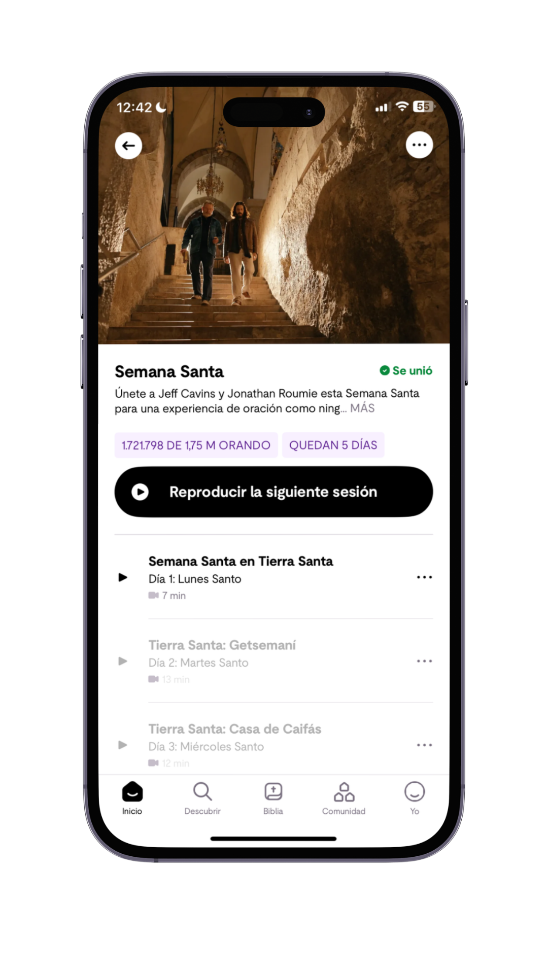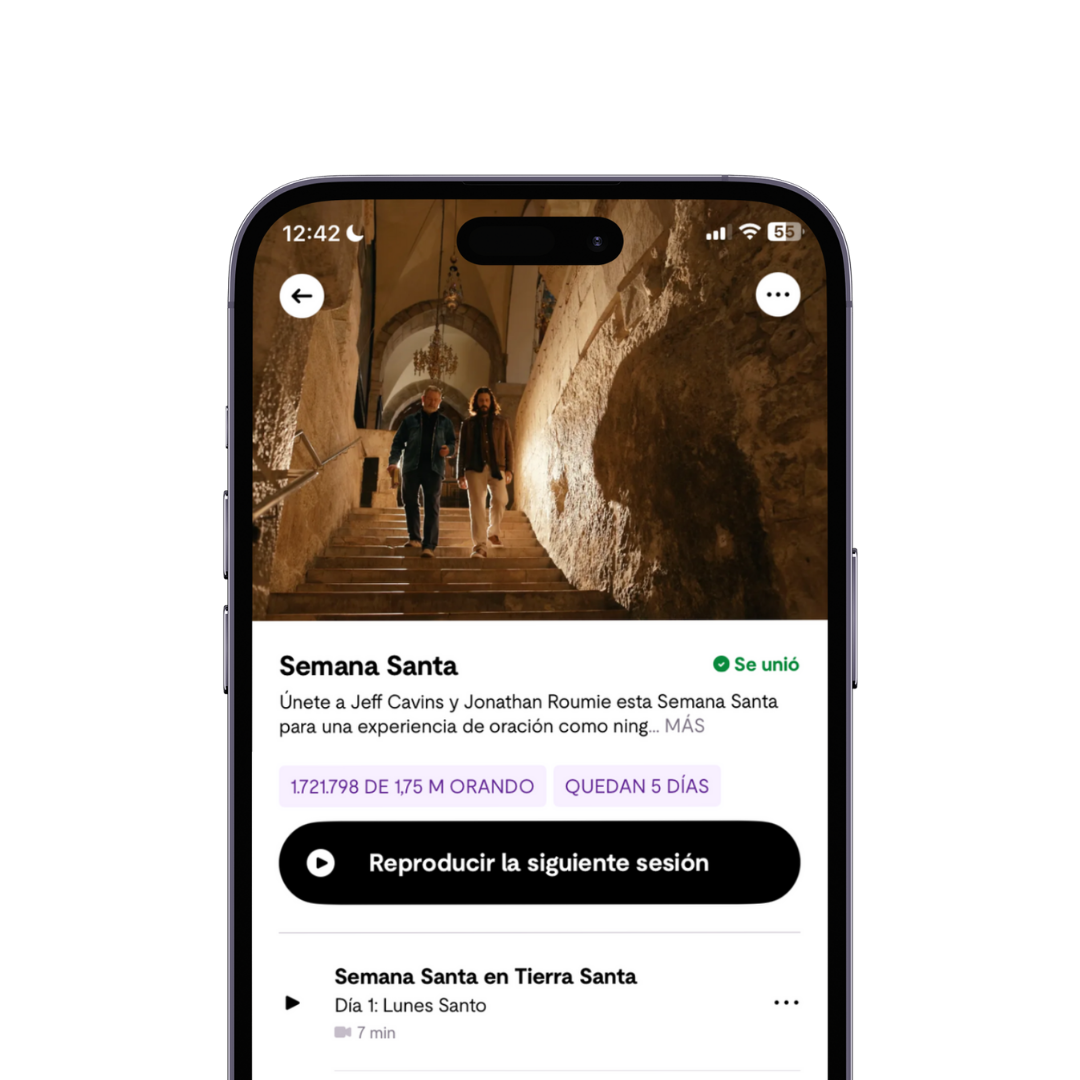 Únete a Jonathan Roomie y a Jeff Cavins en una peregrinación en video por Tierra Santa: recorre la Vía Dolorosa, permanece junto al Gólgota y entra al Santo Sepulcro, mientras oras con las Escrituras y acompañas a Cristo en su Pasión, Muerte y Resurrección.