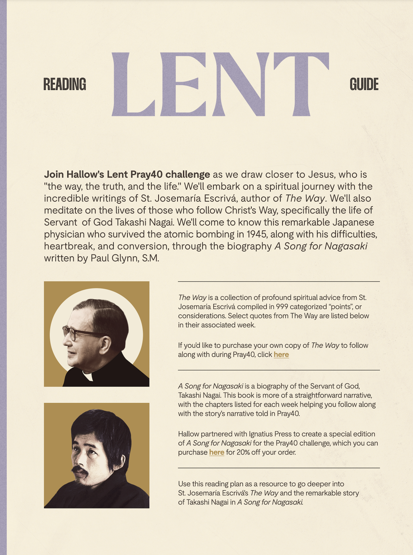 Hallow partnered with Ignatius Press to create a special edition of A Song for Nagasaki for the Pray40 challenge.